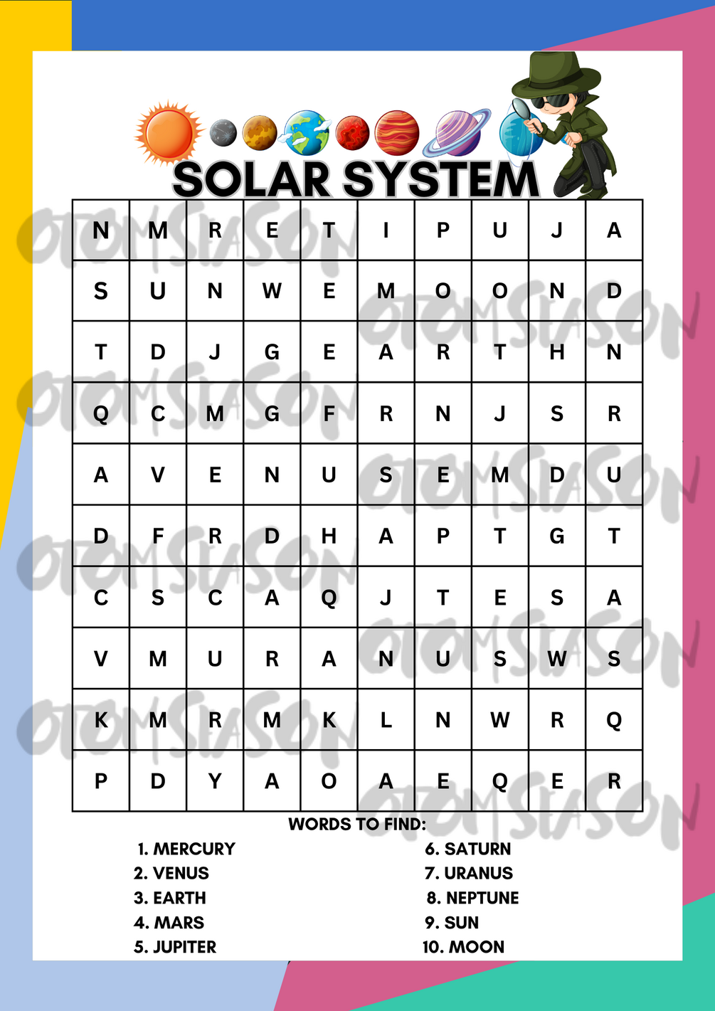 This is a Word Hunt Puzzle Book with answer sheet, can be printed using A4 size paper.